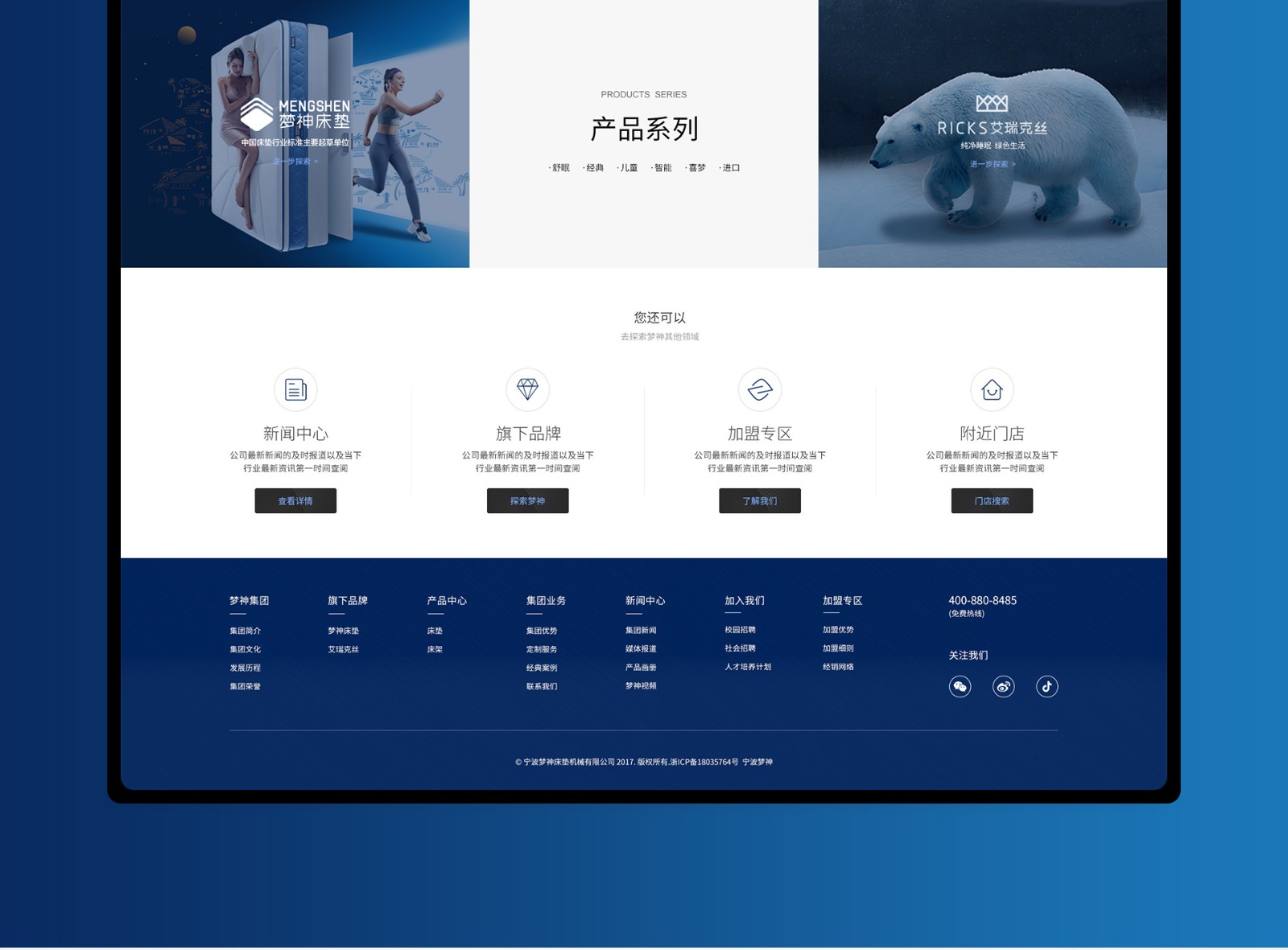 梦神集团拥有六家分公司及“梦神床垫”、“艾瑞克丝”等多个子品牌,其中梦神床垫下设经典系列、舒眠系列,已形成从研发到生产、销售的完整产业链。梦神始终致力于打造以床垫产品为核心,整合枕头、寝具、家纺等睡眠产品,营造舒适健康的睡眠空间,将梦神优质产品和睡眠健康理念传遍全球。